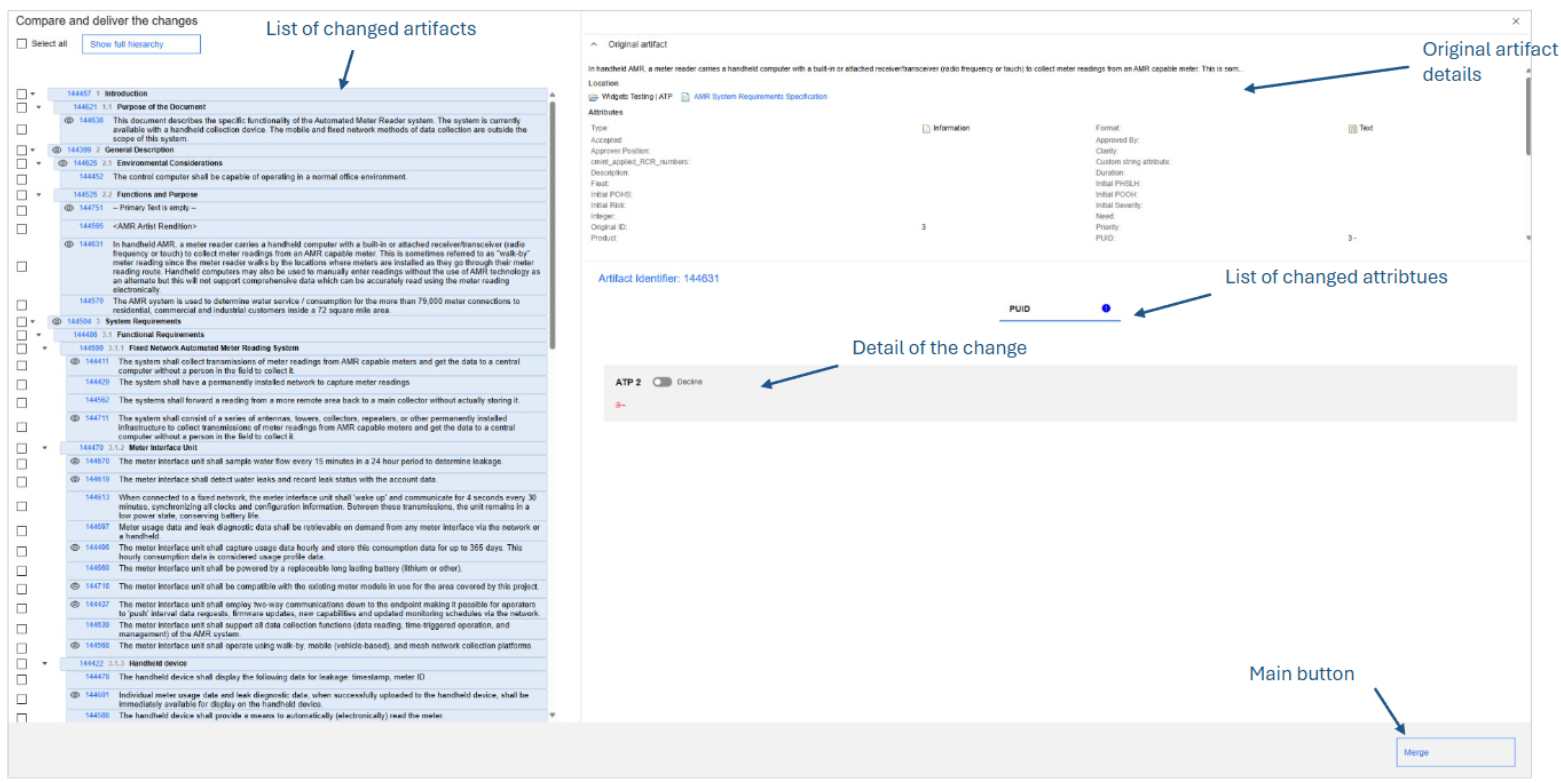 Version Control System - VCS, designed by Softacus for IBM Engineering Requirements Management Doors Next, this add-on empowers users to effortlessly compare configurations with any project or component and partially deliver or accept changes, simplifying the process of examining and monitoring changes. Its features let you selectively choose specific changes for merging or acceptance, providing control over your project’s evolution.